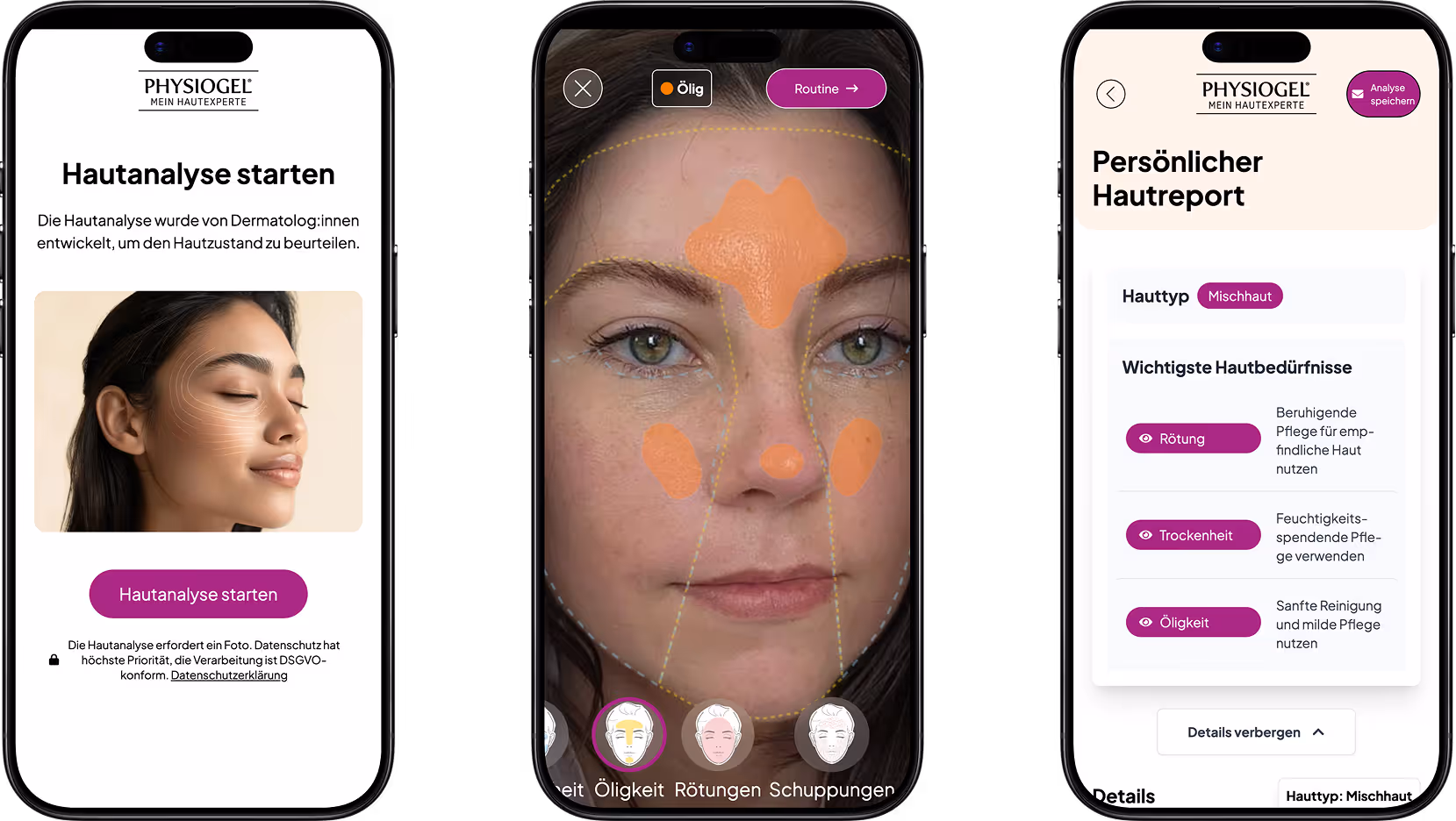 On physiogel.de, Thea Care’s white-label AI enables users to take a selfie and receive instant insights on skin type and key conditions such as hydration, redness, and flaking—followed by tailored Physiogel recommendations.